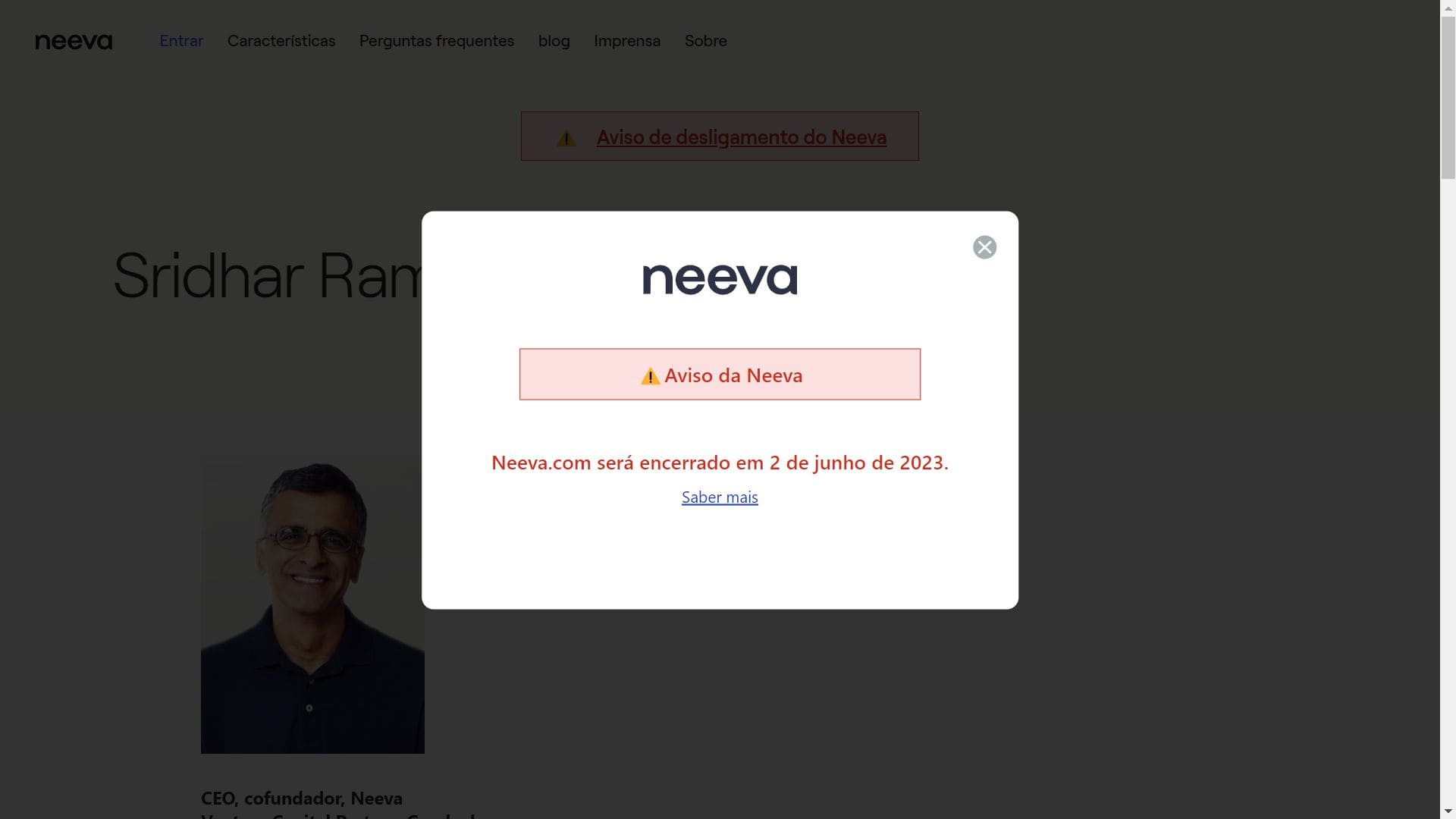 Em maio deste ano, o CEO da Neeva, Sridhar Ramaswamy, anunciou o encerramento do buscador online neeva.com. O mecanismo foi um dos primeiros a implementar o uso de ferramentas e recursos alimentados por inteligência artificial, em 2022.
