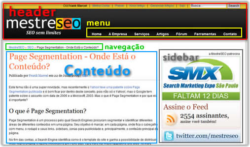 Ainda, com a correta identificação das áreas de uma página e a Search Engine avaliando precisamente o valor de cada link, ela poderá, também, desvalorizar regiões menos importantes: