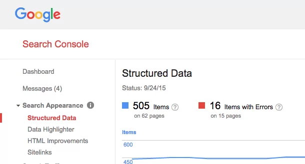 No caso de já existirem as marcações de dados estruturados, abaixo do gráfico estarão listados os tipos encontrados e, de cada um, quantos foram encontrados e quantos apresentam erros. Clicando em cada item listado você obtém mais detalhes, inclusive sobre qual o erro encontrado. Aí basta corrigir.