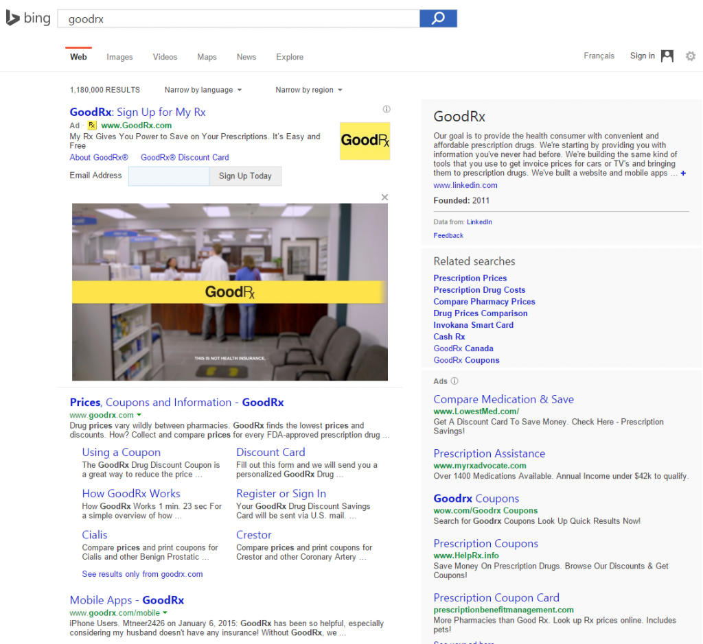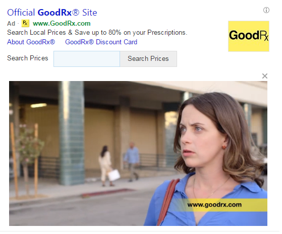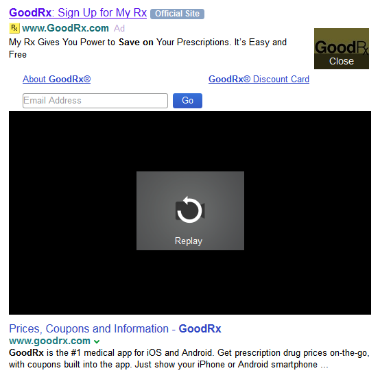 Talvez impulsionado pela velocidade e interação que os vídeos possuem, o Bing começou a testar um modelo onde ele exibe uma thumbnail com um ícone de “play” junto ao anúncio da marca: