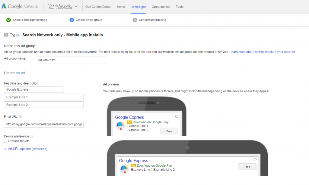 Utilizando ainda a força de dispositivos móveis, o Google anunciou a liberação de anúncios de texto nos resultados de busca da Google Play. Agora, através da sua interface do painel do Adwords, você conseguirá criar anúncios para instalação de aplicativos: