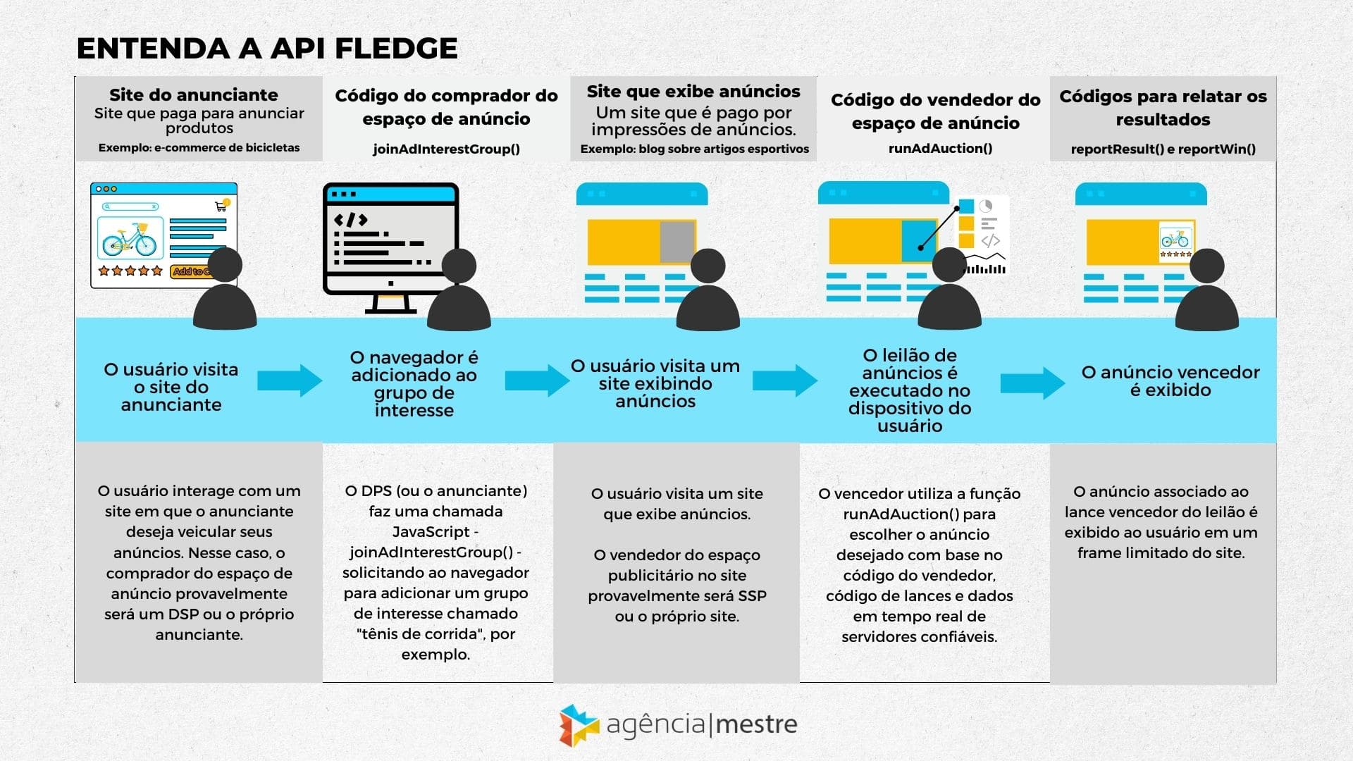 O FLEDGE é a aposta da Privacy Sandbox para remarketing e audiências e foi projetado com o objetivo de impedir que o comportamento de navegação dos usuários seja rastreado por terceiros. O Google começará a testar a API nas contas AdSense em 28 de agosto.