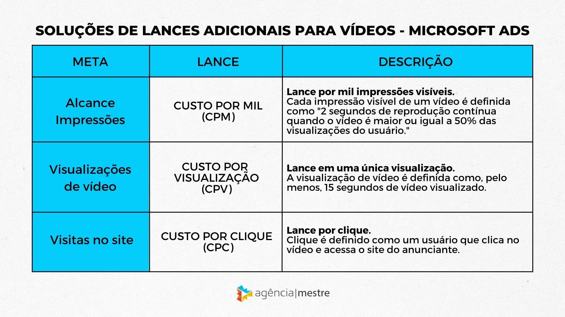 Outra atualização importante foi para os anúncios em vídeo, que terão três opções diferentes de lances: