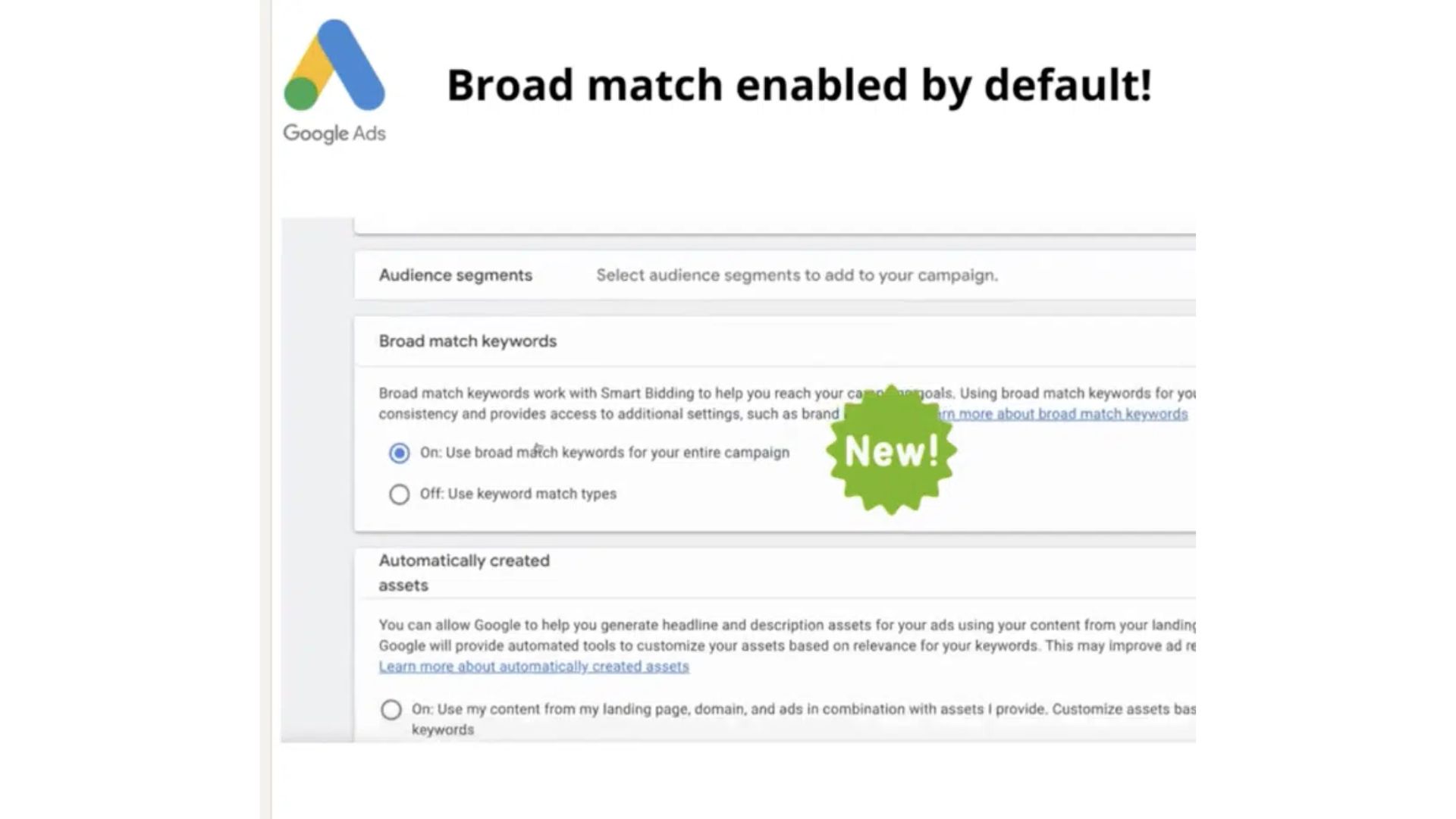 Com a mudança anunciada recentemente pelo Google Ads, essa agora é a correspondência padrão ao criar novas campanhas de pesquisa, diferentemente do padrão anterior, que era ter a correspondência ampla desativada.