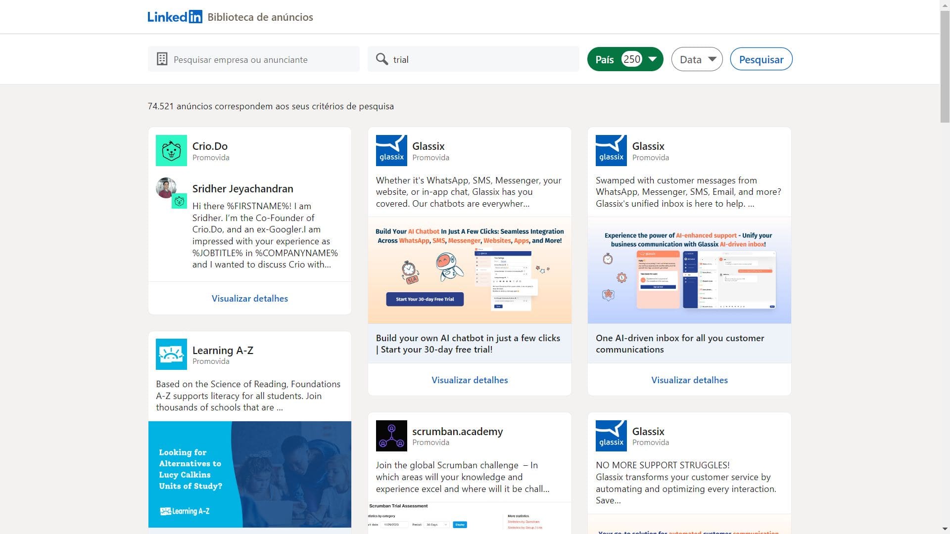 Assim como as ferramentas da Meta e do Google, a Biblioteca de Anúncios do LinkedIn permite que os utilizadores pesquisem por anúncios da concorrência com base em palavras-chaves.