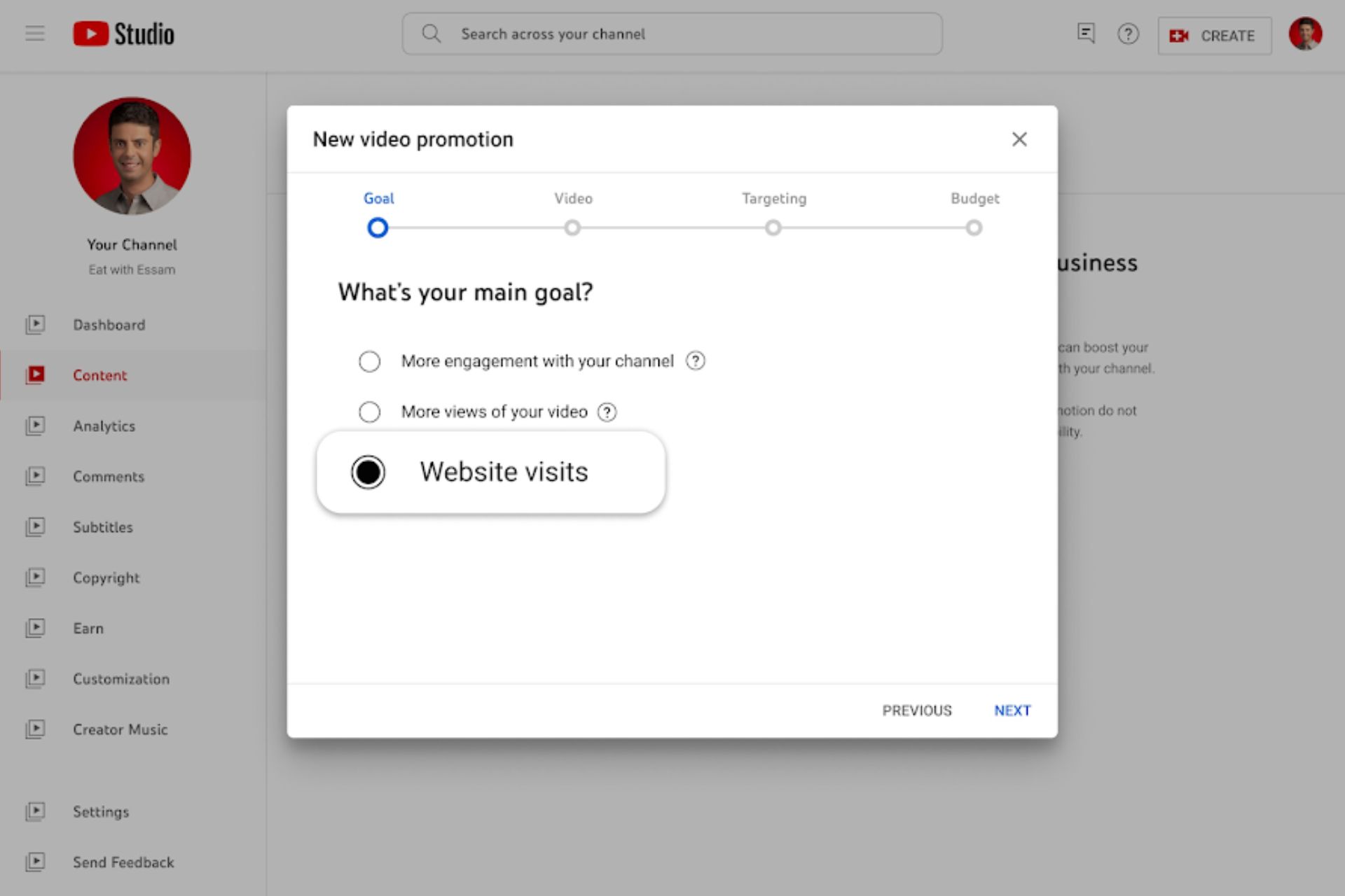 Conforme compartilhado, ao atualizar as campanhas via YouTube Studio, os gestores de tráfego agora podem focar em “Visitas ao site” como sua meta-alvo. Essas são adicionais às opções de anúncios mais avançadas disponíveis no Google Ads.