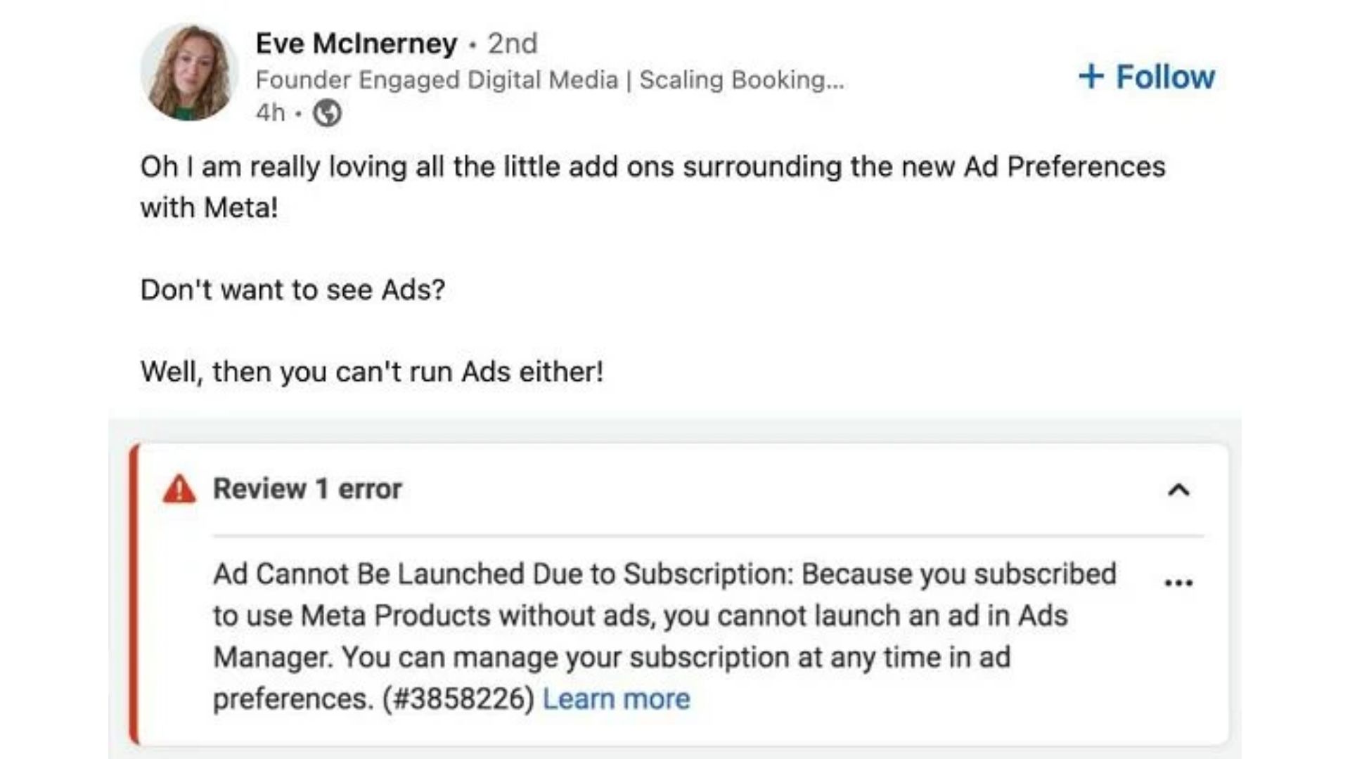 Por que a Meta está restringindo a veiculação de anúncios de contas que optam pela assinatura?