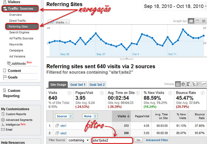 Traffic Sources -> Referring Sites (ou, em português: Fontes de Tráfego -> Sites de Referência)