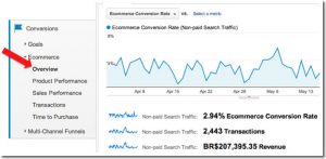 No último caso, uma das maneiras de se obter dados relacionados as conversões (compra de produtos), é através da configuração do Google Analytics para que ele faça o monitoramento de informações relacionadas a um e-commerce (transações/compras, receita gerada, conversão entre outras).