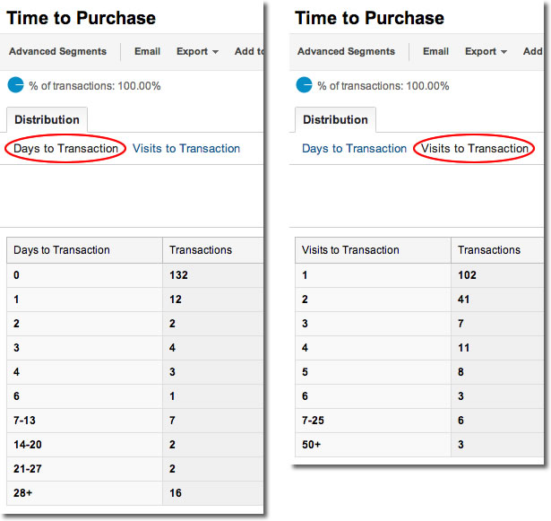 - O intervalo de dias entre a primeira visita e o dia que o visitante comprou; e