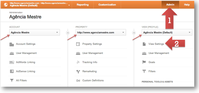 Naturalmente, você precisa ter acesso de administrador a conta que deseja fazer a configuração, que começa ao acessar a área de administrador: